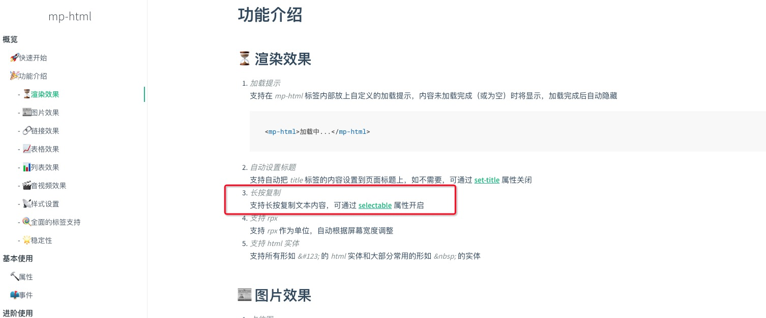 <text user-select>长按复制</text>rich-text组件的user-select属性,无论设置“true”还是“false”,都是无效的,长按都可以唤出复制菜单,我理解在设置false时,应该不能选择复制。请工程师测试 我在华为机子上测试的结果,在开发工具上也是一样无效的。