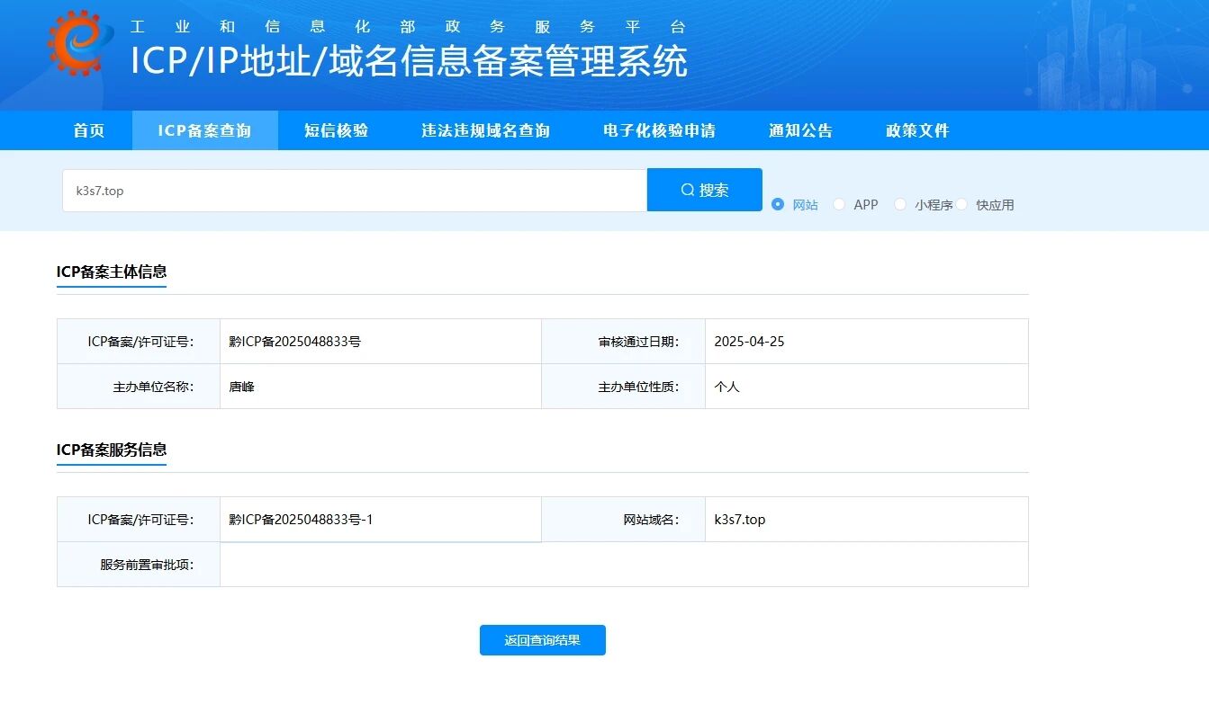 www.k3s7.top 主域名和二级域名 泛解析也是 全新备案域名