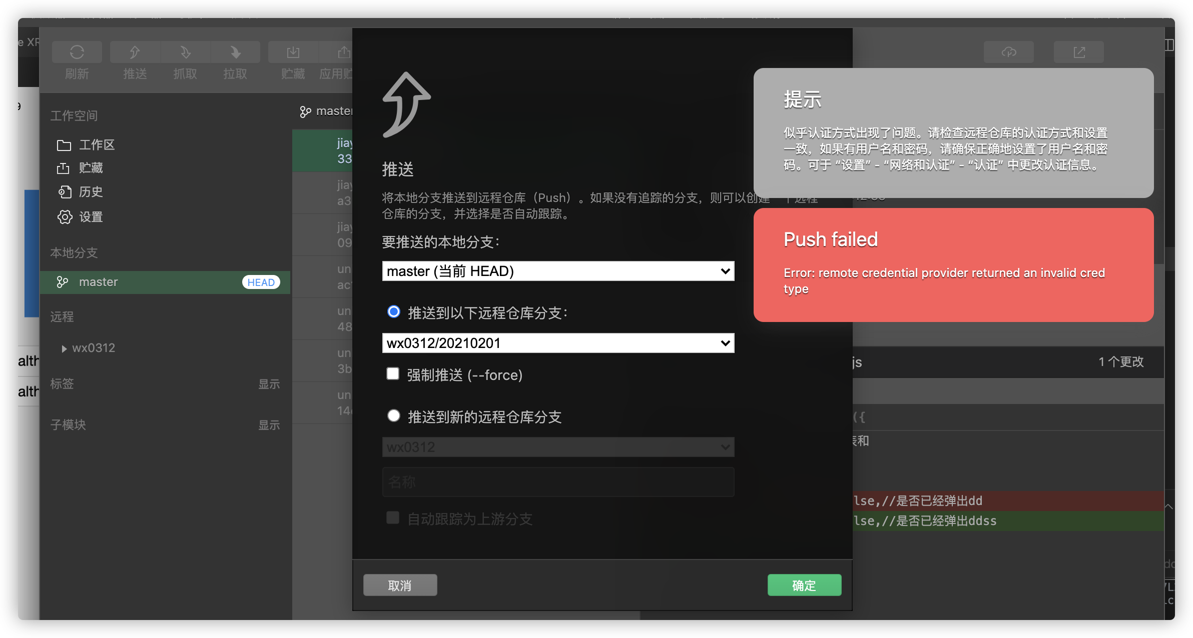 确认后,可以在命令行里使用 git push 指令手工 push 一次,并在版本管理选择 【SSH Agent】选项再试一次呢