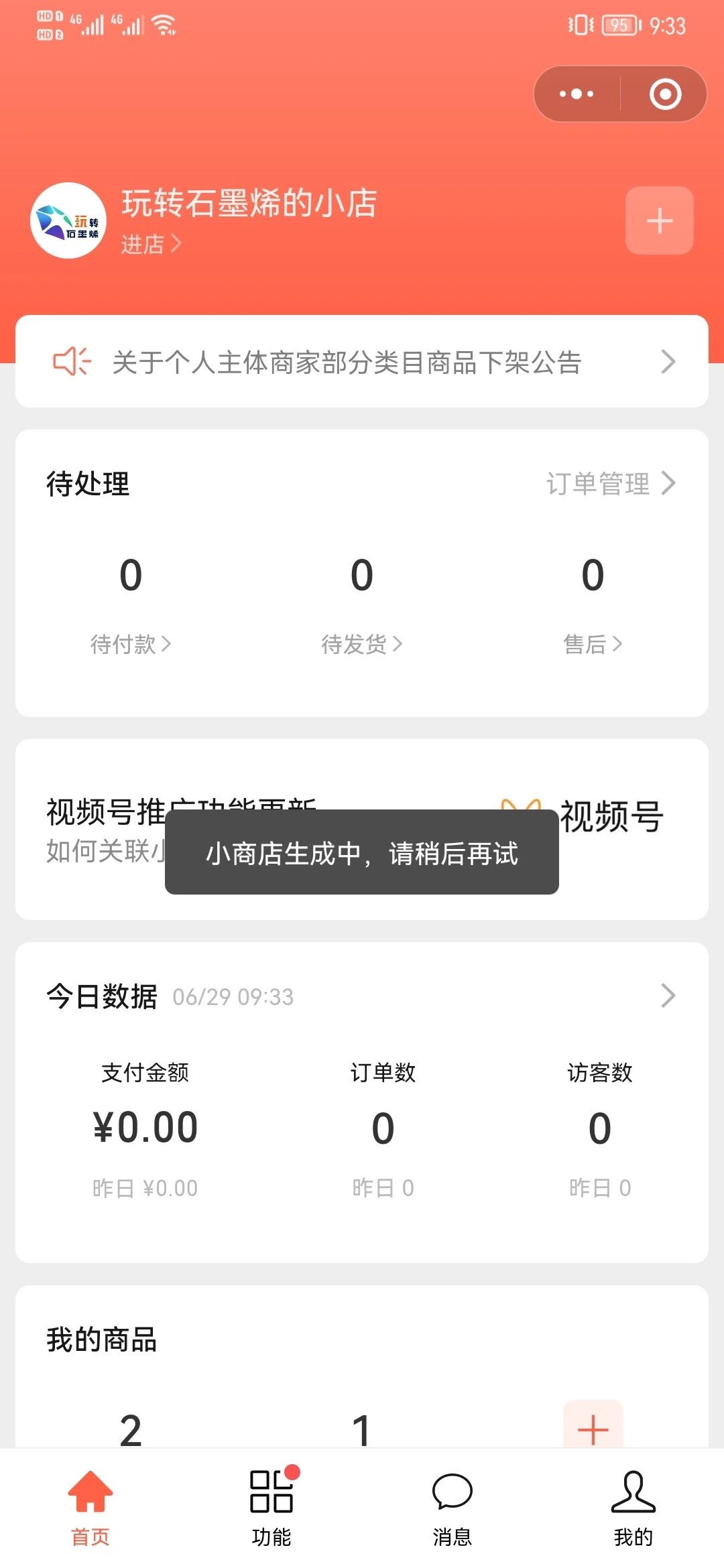 扫码登录小商店,完成开店任务(共四步),即可卖货经营