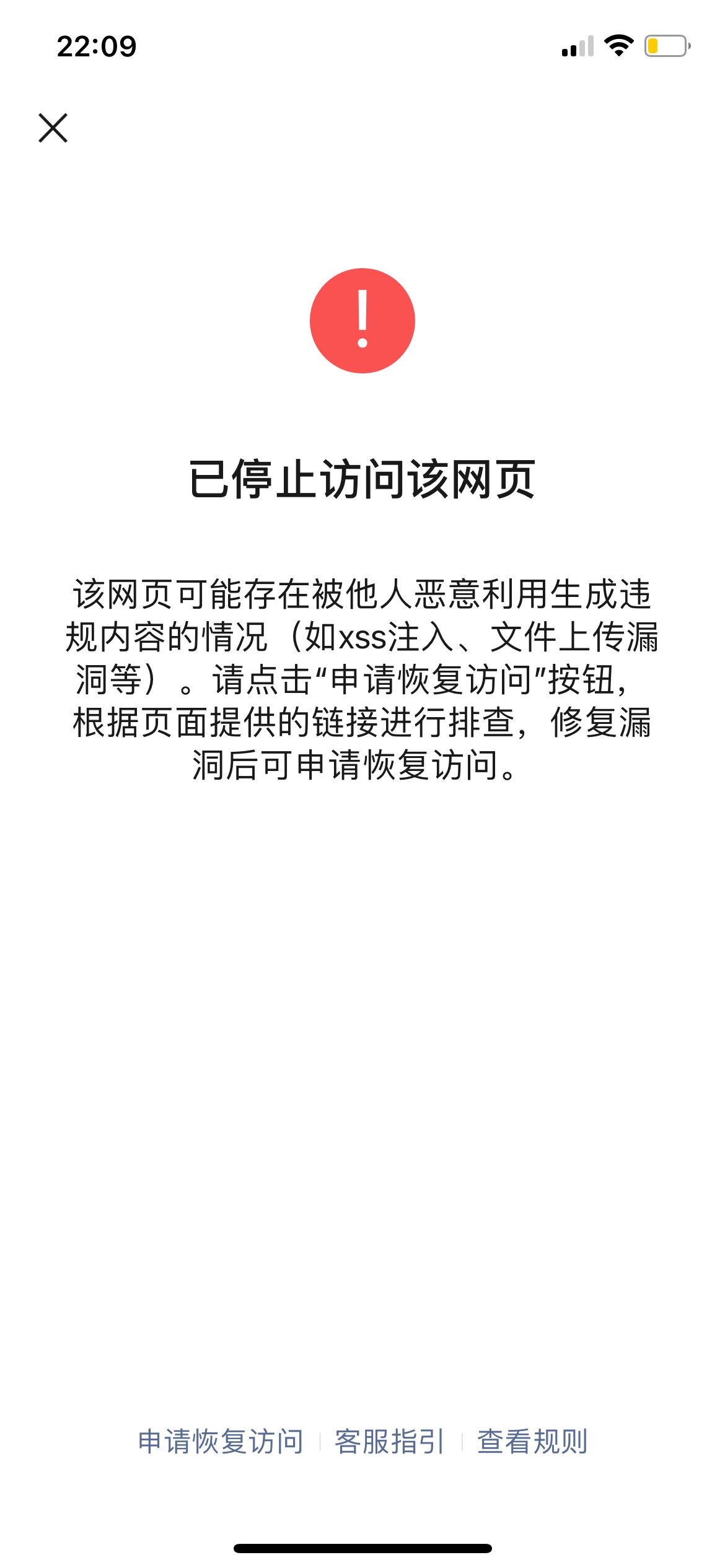 我们的域名s3.dxhmt.cn 突然被微信封禁,在微信环境无法打开,提示网页可能存在被他人恶意利用生成违规内容的情况(如xss注入、文件上传漏洞等)。该域名为我们小程序中的文件域名,小程序中该域名的所有文件都无法访问。我们尝试申诉,申诉结果为违反《微信外链内容管理》第18条,不予通过。
