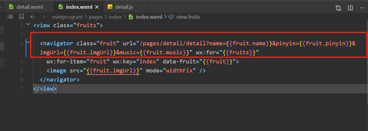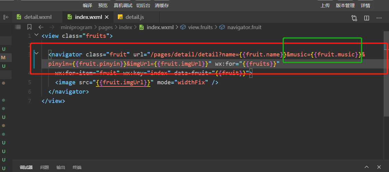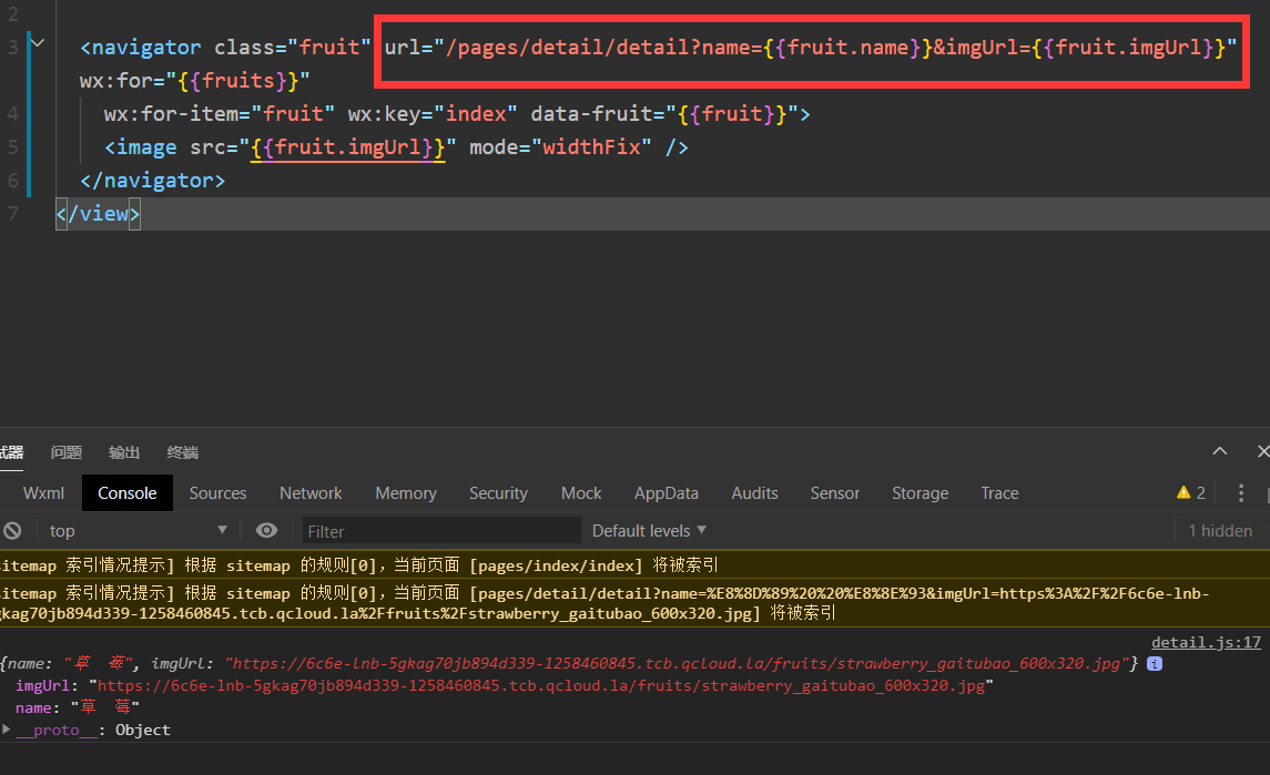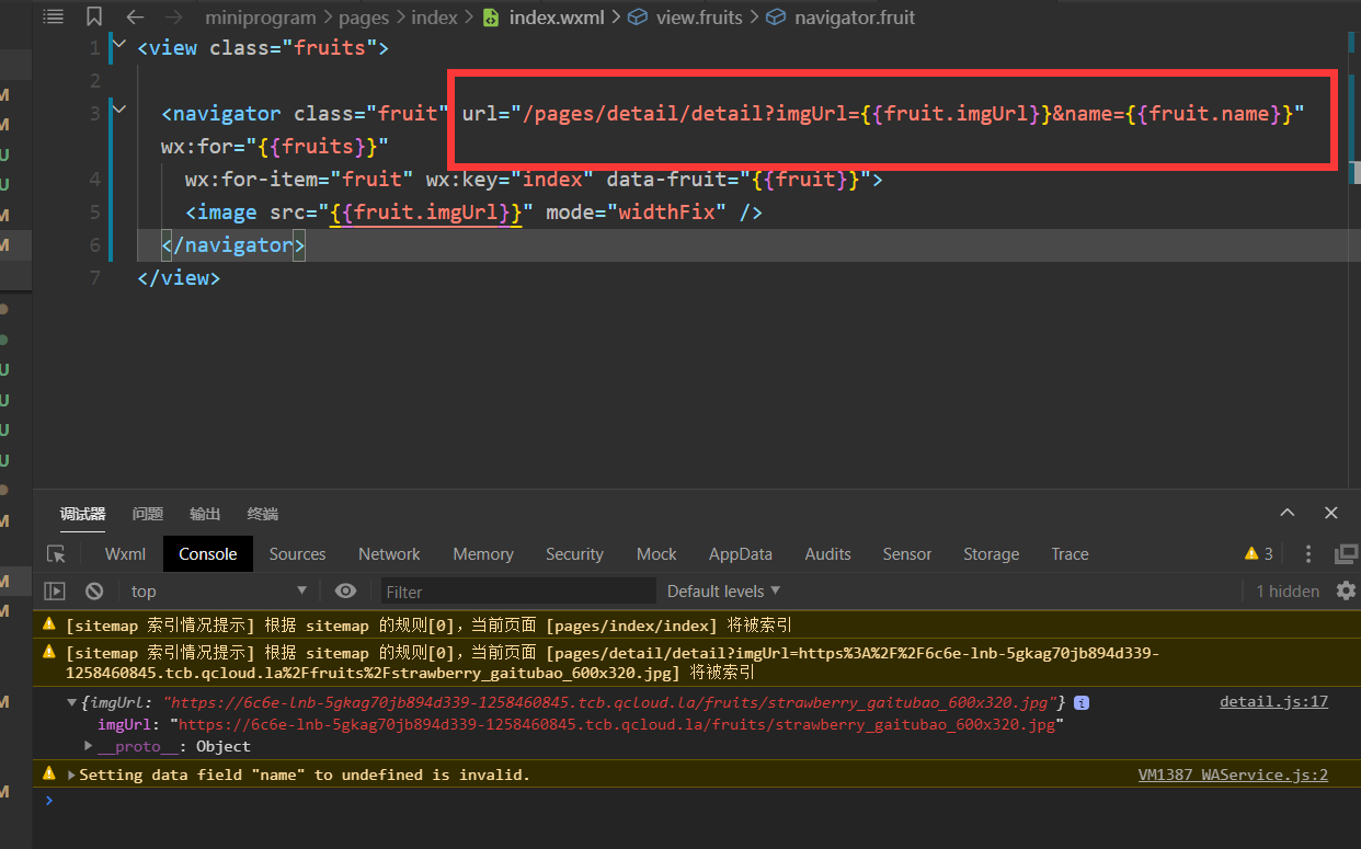 我这也测试了,navigator没问题啊,你这个提示是说name赋值的是undefined,你可以点击跳转的时候输出看看是不是{{fruit.name}}是undefined