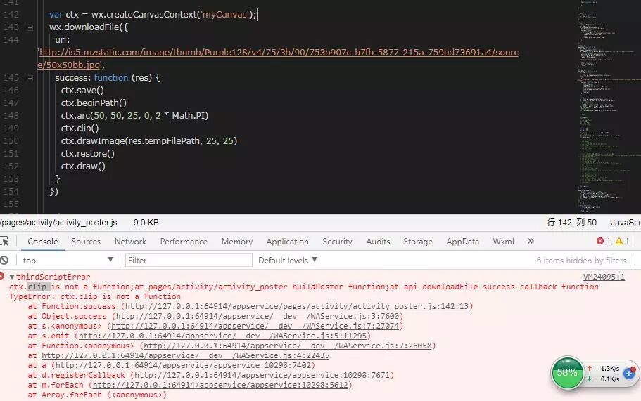 代码片段为官方示例代码:https://developers.weixin.qq.com/miniprogram/dev/api/canvas/clip.html