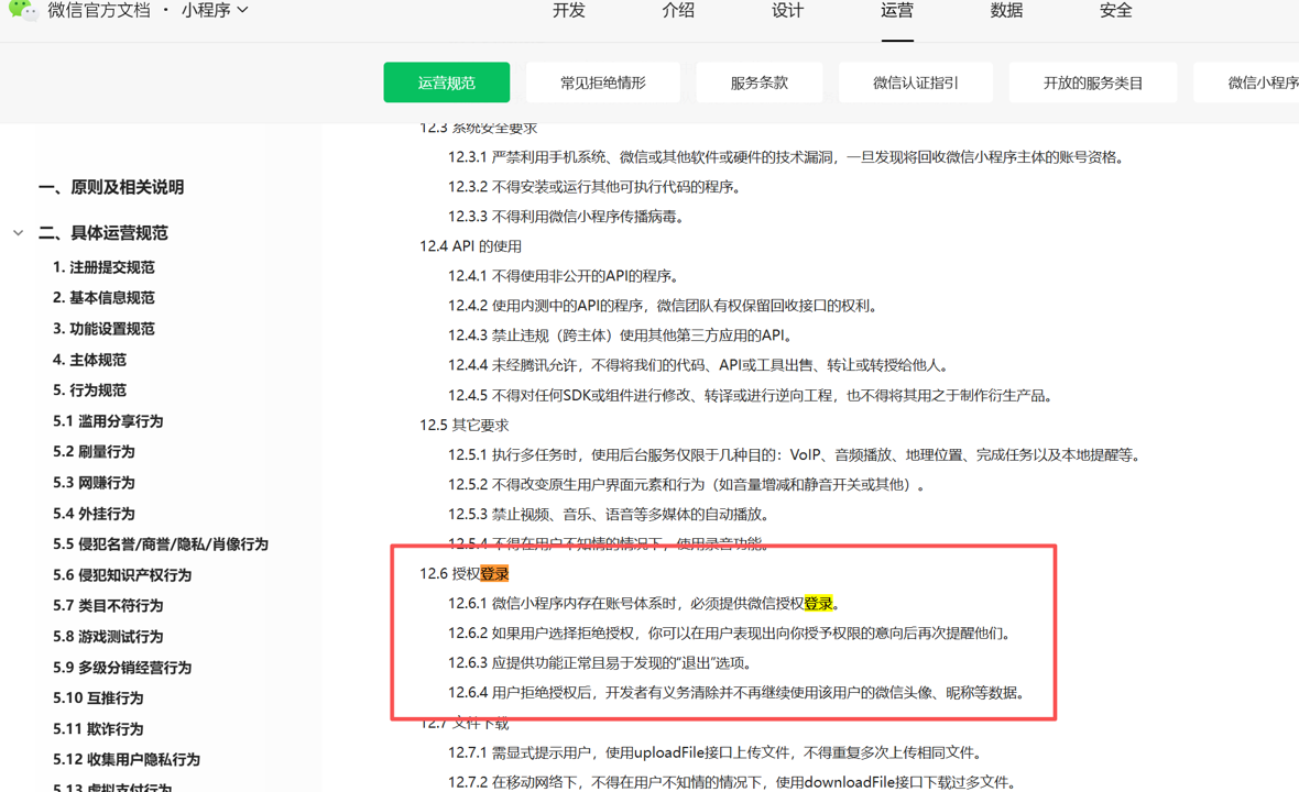 查看了运营规范要求,对于授权登录的要求是: