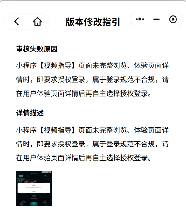 昨天就修改去除了一个入口限制,去掉了return。提交程序审核,结果审核不通过,不通过的原因如下: