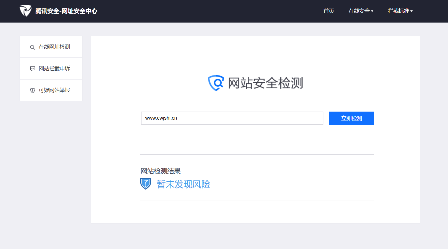 下面是腾讯网址安全中心截图