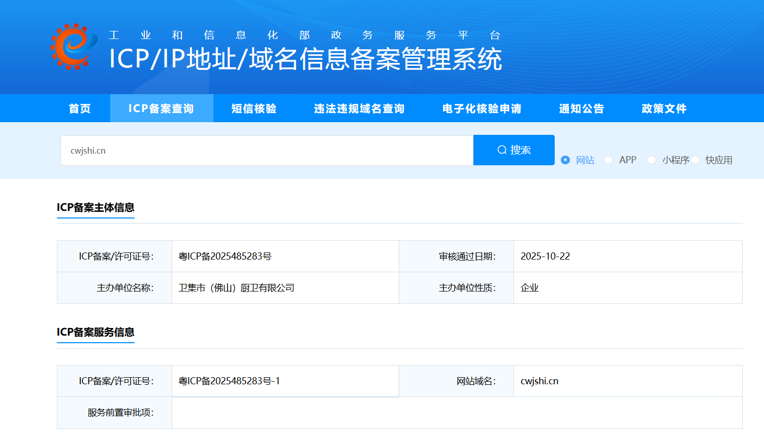下面是网站域名备案信息