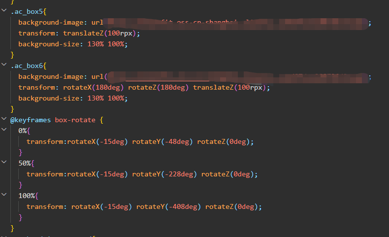 两个问题:1. ac_box1M ac_box 这两个class怎么写的? 2. 为ac_rule这个class设置z轴试试.ac_box1M{background-image: url(https://unionfit.oss-cn-shanghai.aliyuncs.com/xxxxx);background-size: 130% 100%;}.ac_box{width: 200rpx;height: 200rpx;position: absolute;top: 0;left: 0;background-repeat: no-repeat;background-position: center;}这些是第一个问题至于第二个问题,是将弹出框也做个偏移,并保持偏移量大于其他动画?是这个意思?层级不是z-index吗,怎么手写的position