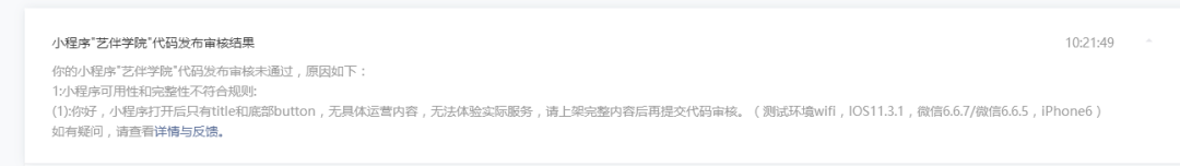 我们这边测试了无数遍,都是有内容的,已经提交好几次审核了,不是服务类目不符就是没有运营内容,为什么我们这边都能访问,实在是找不出上面所描述的问题