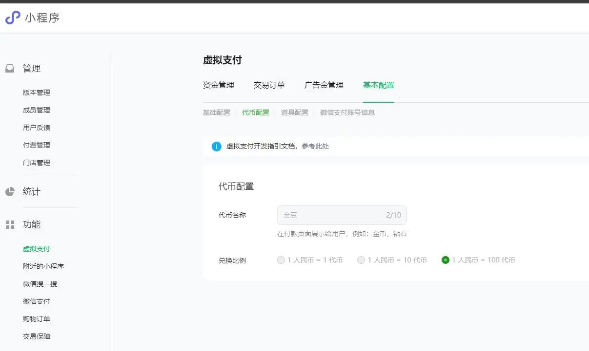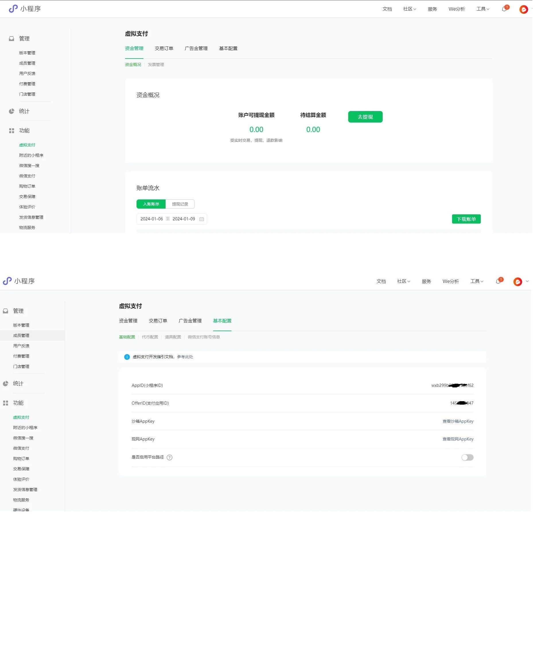 小程序已按照产品文档接入虚拟支付,参考文档: https://developers.weixin.qq.com/miniprogram/dev/platform-capabilities/industry/virtual-payment.html