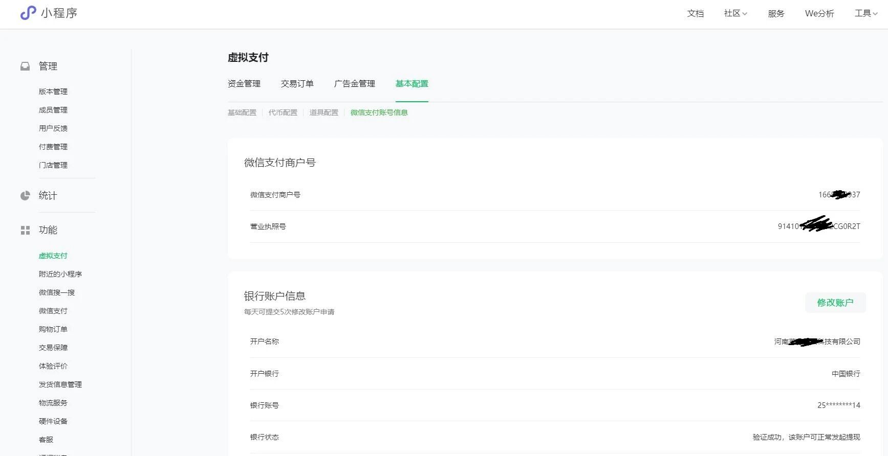 根据每一步的反馈都是成功的,但是目前调用 wx.requestVirtualPayment 返回15019,"调微信报商户受限,商家可以登录微信商户平台/微信支付商家助手小程序查看原因和解决方案" 技术反馈说是没有接入成功,但是我这边mp-管理后台进去就是虚拟支付的管理和设置界面,请问接下来该如何处理