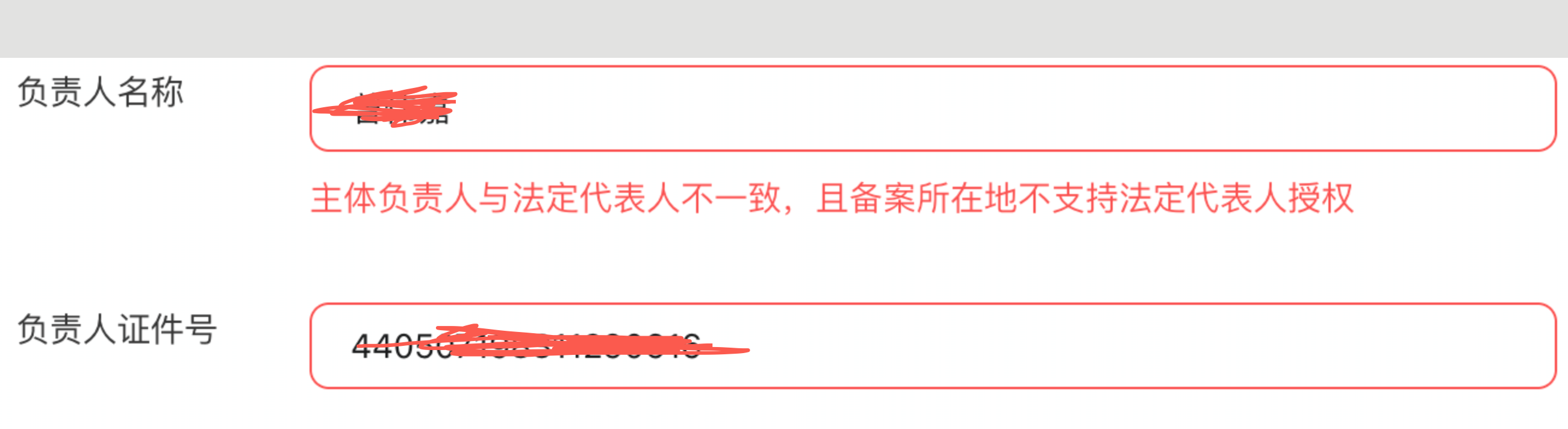 法人身份证变更了姓名,提交备案时报“主体负责人与法定代表人不一致,且备案所在地不支持法定代表人授权”