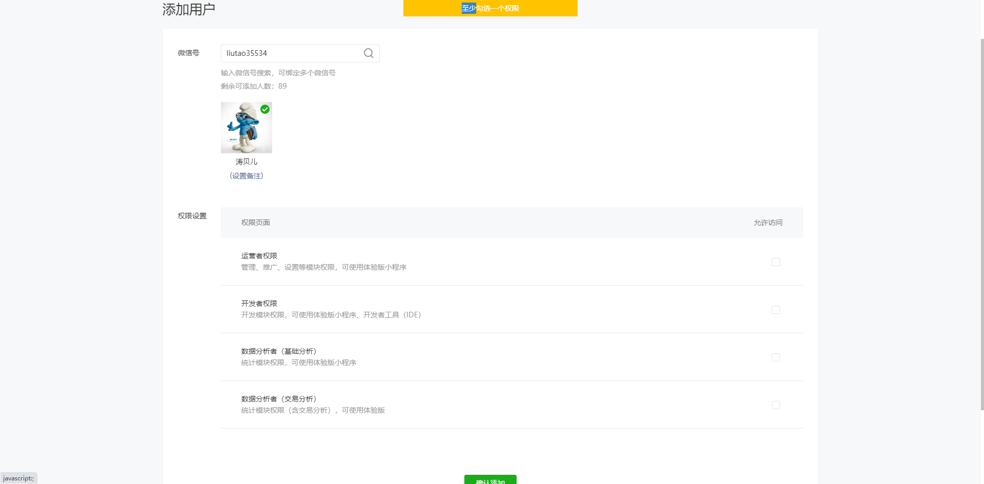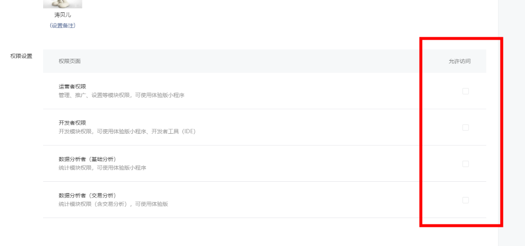 提示至少勾选一个权限,但是无法勾选。
