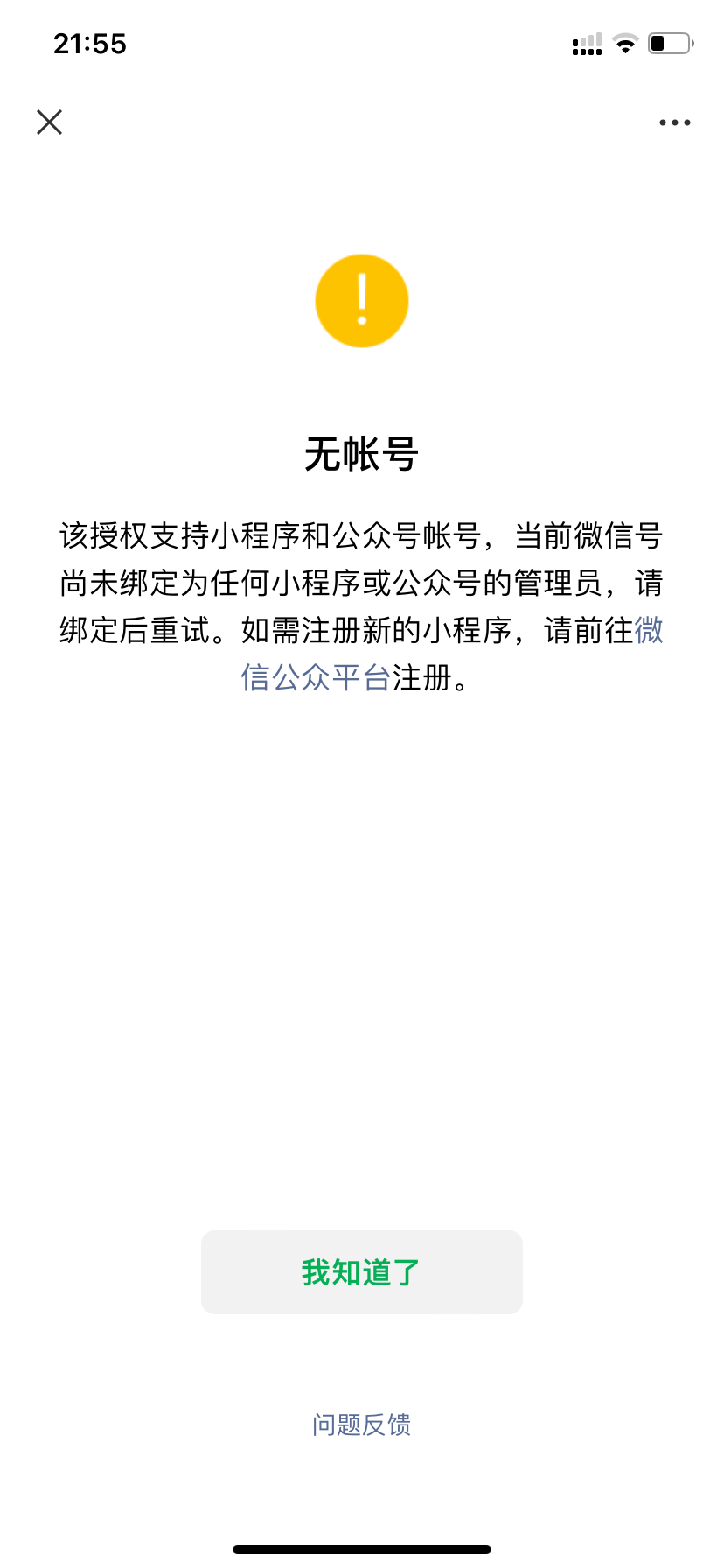 刚注册了公众号订阅号,已经是管理员,但还是不能授权,请问是为什么?