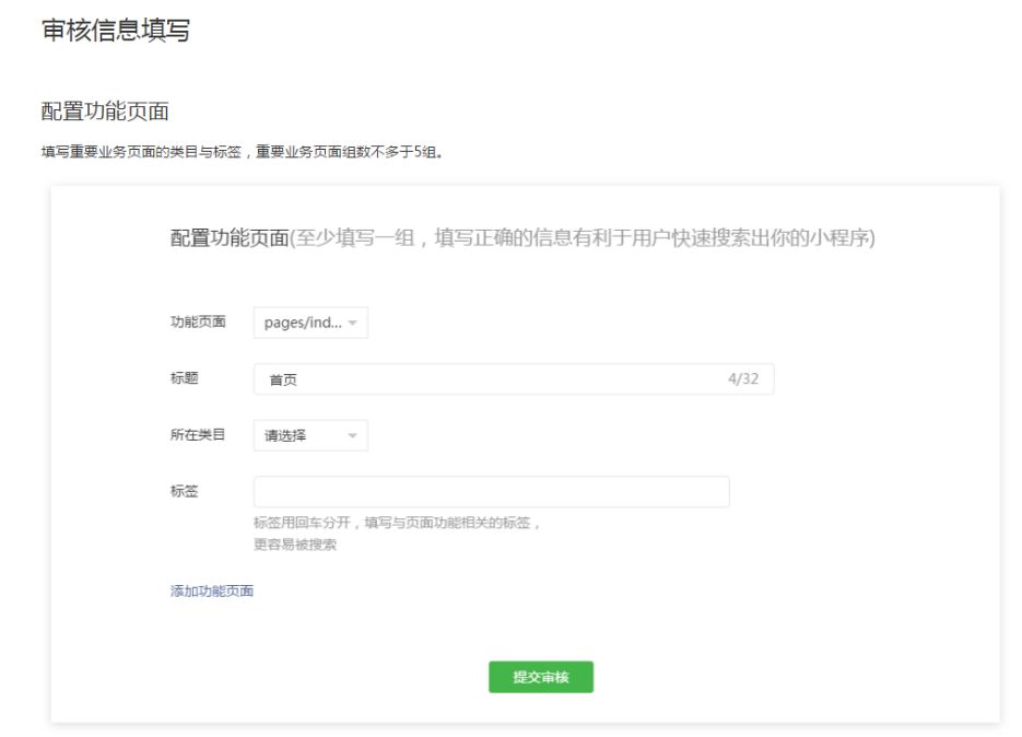 你好,请在配置功能页添加符合该类目的功能页面。(详见下图)
