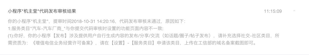 我们随后增加了社区论坛的类目,通过审核后再次提交,然后还是没有过审,目前删除汽车厂商类目是否可以解决该问题?
