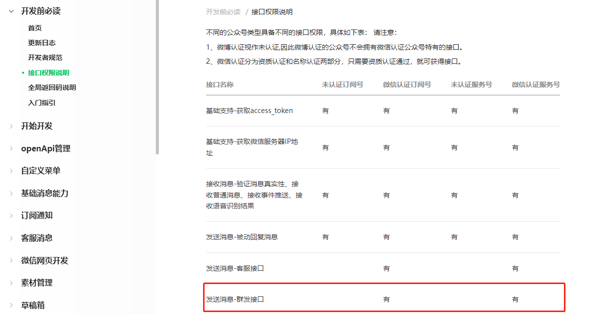 你好,可参考https://developers.weixin.qq.com/doc/offiaccount/Getting_Started/Explanation_of_interface_privileges.html