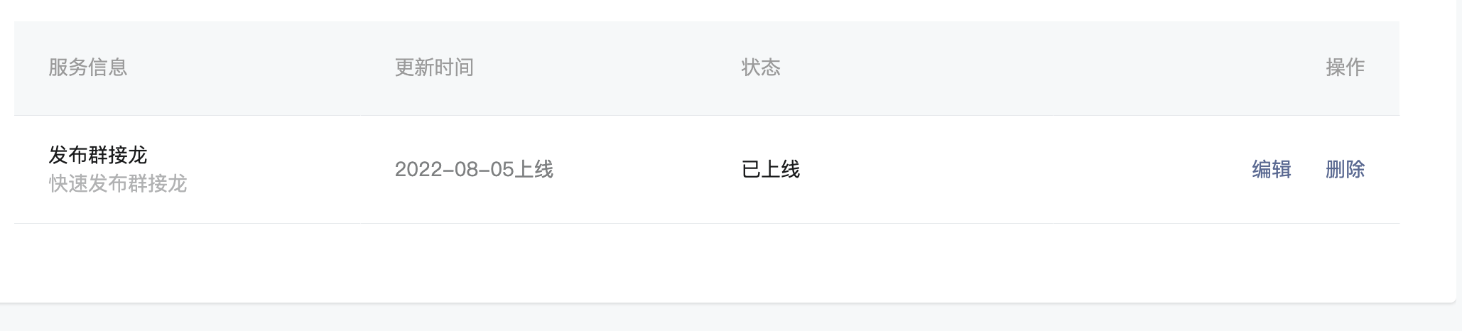 问题详情:服务搜索的名字是【发布群接龙】,但是搜索关键字接龙展示的是【创建接龙】,请问是你们的bug吗,我重来没有上线过创建接龙这个服务搜索,可以帮忙查看一下吗