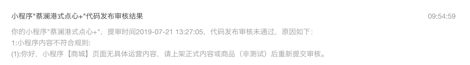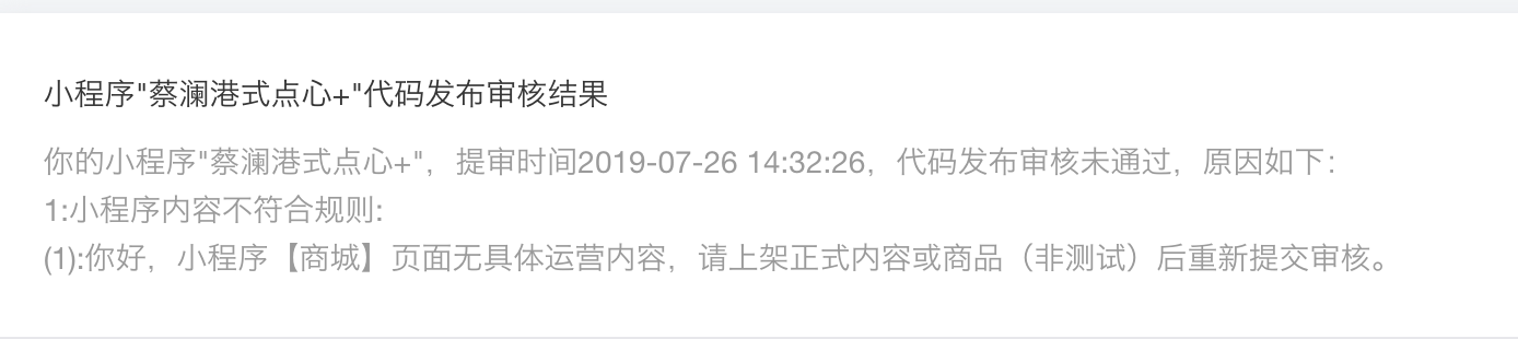 已提交过商家类目审核,商城所售商品符合小程序内容规则,属于正式运营内容。之前提交审核有备注商城信息,后面提交未备注又被同样理由打回。