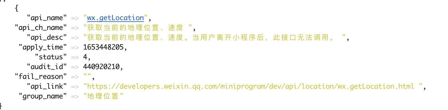 你好,核实wxe5b78fb8f5333636小程序当前wx.getLocation接口申请状态为审核不通过,请重新确认下审核状态?