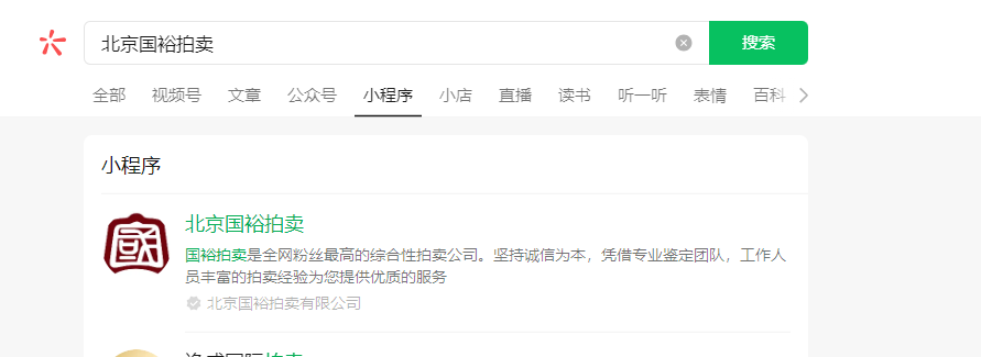 通过微信搜索,搜北京国裕拍卖,搜不到小程序