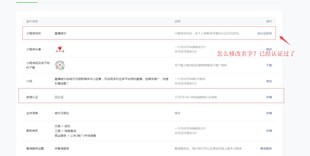 这个名称怎么修改,又得重新认证?![]()