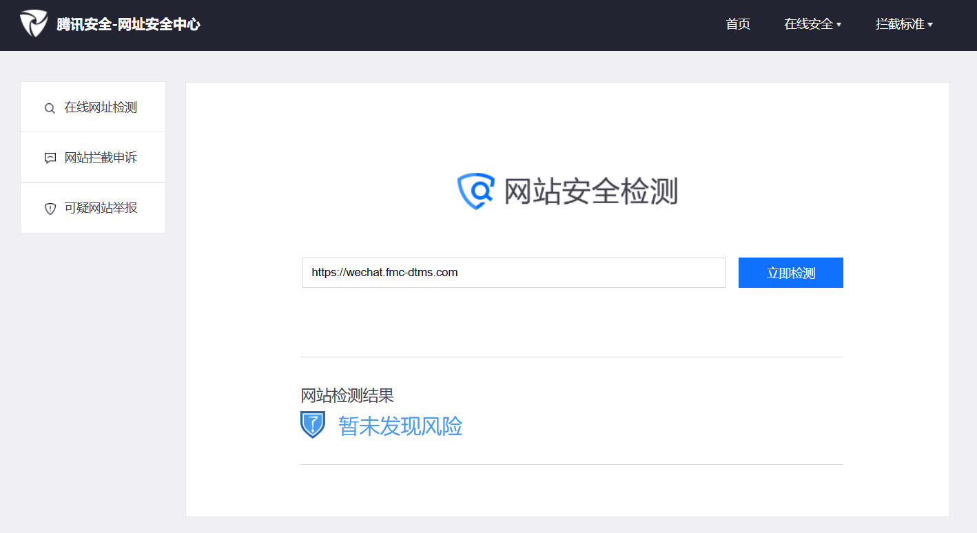 微信内访问 https://wechat.fmc-dtms.com 提示 “无法确认该网页的安全性,请谨慎访问。”。