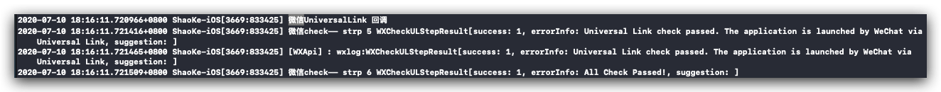 我是出现了step----5, 0, Universal Link check failed. The application is launched by WeChat via scheme, Common problems self-check guide: [微信开放平台App iOS端接入新版本SDK 常见问题自查指引]https://developers.weixin.qq.com/community/develop/doc/000ce0403bc9d0ea1a0a67f415b409