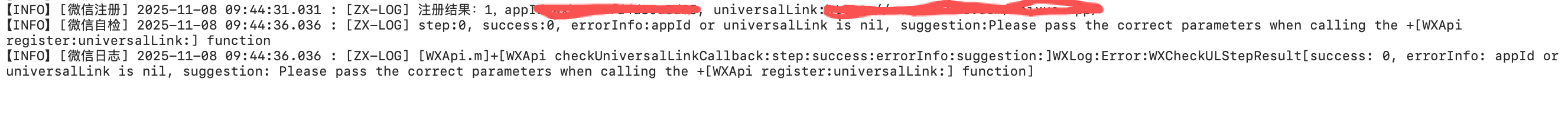 各种神奇bug,明明注册成功,自检却提示 appid或者universalLink为nil