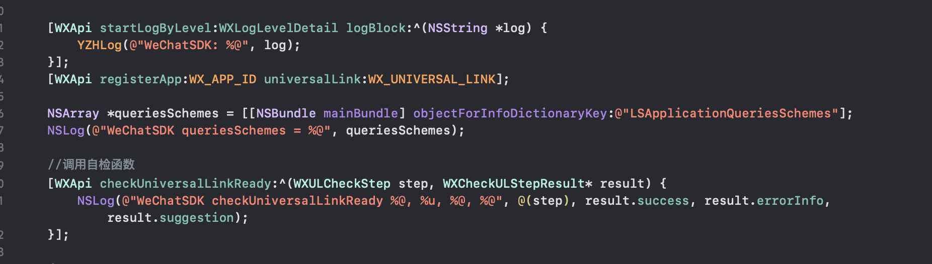 [AppDelegate.m:160行] WXApi 调用自检函数:0, 1, check passed,