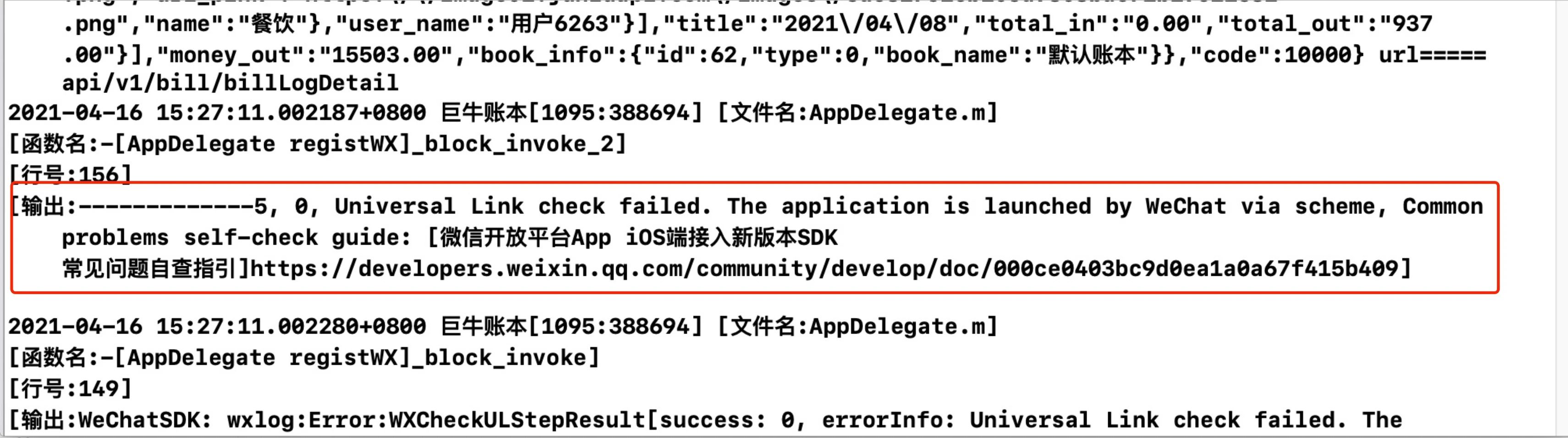 wxlog:Error:WXCheckULStepResult[success: 0, errorInfo: Universal Link check failed. The application is launched by WeChat via scheme, suggestion: Common problems self-check guide: [微信开放平台App iOS端接入新版本SDK 常见问题自查指引]https://developers.weixin.qq.com/community/develop/doc/000ce0403bc9d0ea1a0a67f415b409]
