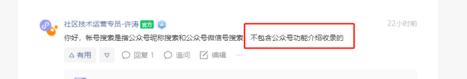 你好,帐号搜索是指公众号昵称搜索和公众号微信号搜索,不包含公众号功能介绍收录的