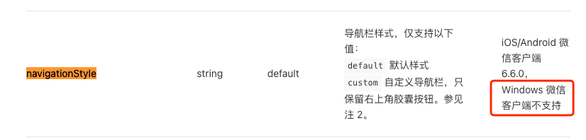 因为电脑端不支持 navigationStyle: custom ,你可以判断当前是否为电脑端,如果是电脑端就把页面的自定义导航栏隐藏掉,使用原生导航栏。