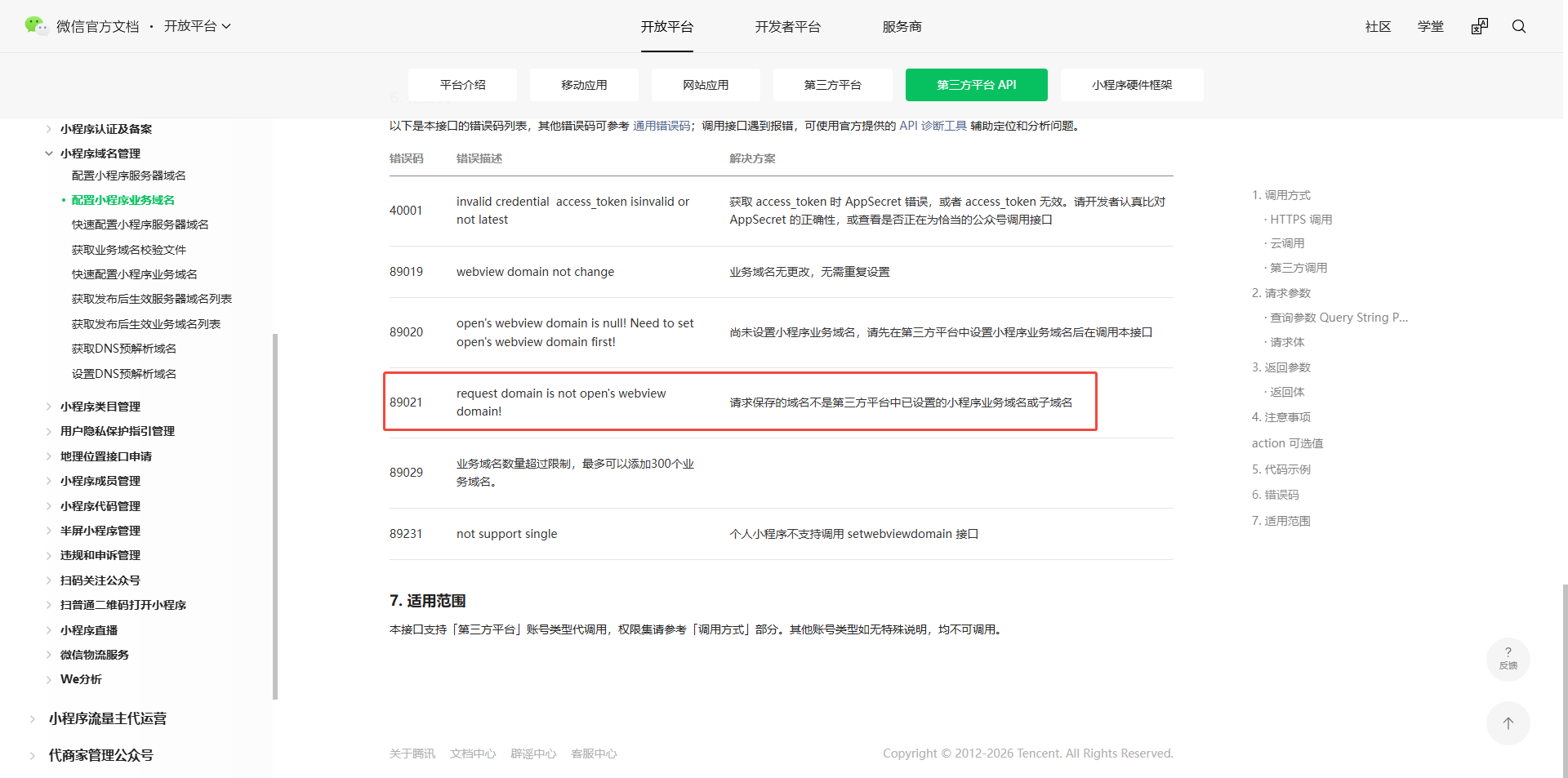 设置业务域名 {"errcode":89021,"errmsg":"request domain is not open's webview domain! rid: 695b656d-5064edd8-4511ec0c"}