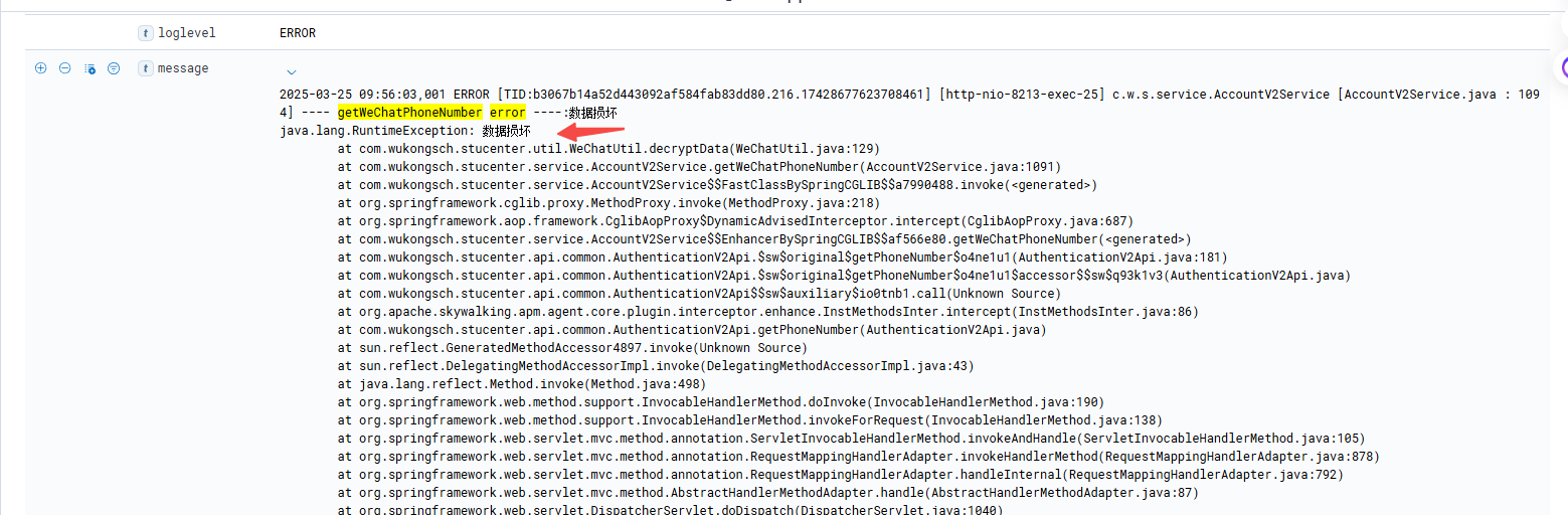 log.error("---- getWeChatPhoneNumber error ----:{}", e.getMessage(), e);