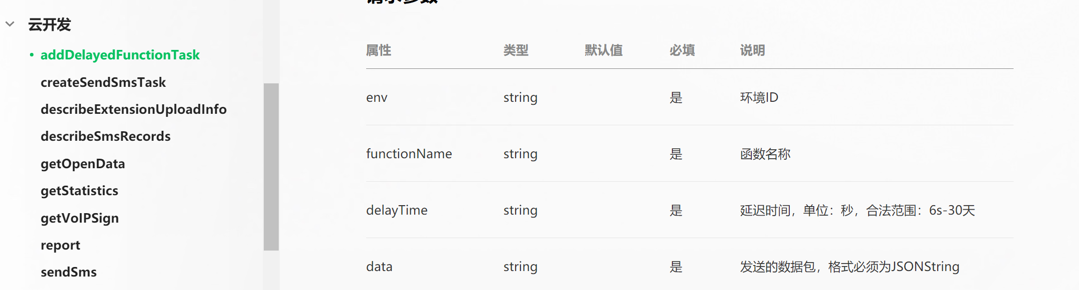 https://developers.weixin.qq.com/miniprogram/dev/api-backend/open-api/cloudbase/cloudbase.addDelayedFunctionTask.html