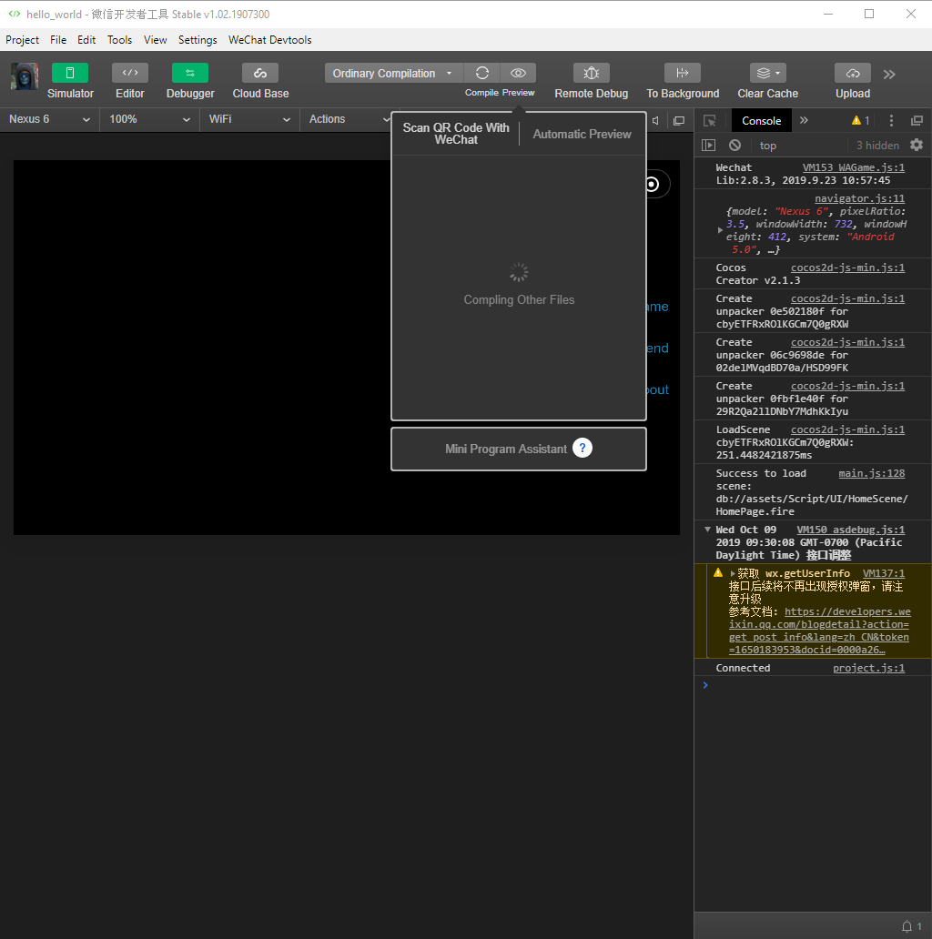 I'M developing a game using cocos creator 2.1.2, but everytime is still "Compiling other files" process when preview the game.