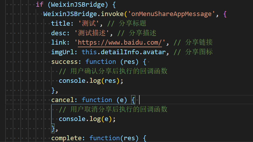 不能直接拉取好友列表分享,只能引导用户去点那三个点,然后用户自己去点分享到哪儿,并且分享成功与否都会走success回调。