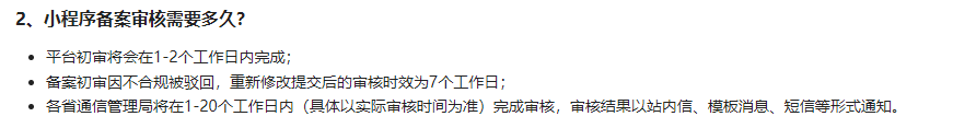 你好,目前该小程序备案进度提示等候管局审核中,如还没有收到短信,辛苦随时留意一下短信通知,进行核验,核验完成后就会进入管局内审核。各省通信管理局将在1-20个工作日内(具体以实际审核时间为准)完成审核,请耐心等待审核,审核结果会以站内信、模板消息、短信等形式通知到小程序管理员。