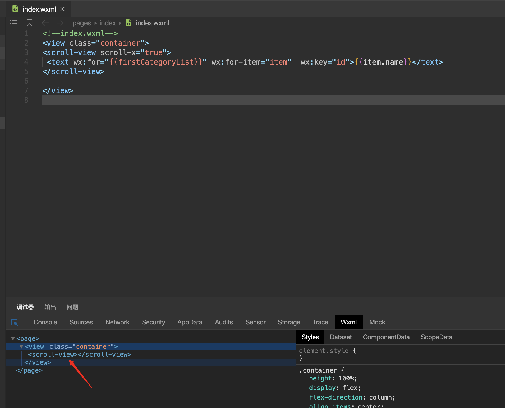 页面上能正确显示子节点,但是调试器Wxml界面检查无法看到子节点,