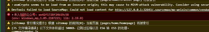 使用电子健康卡小程序插件时,微信开发者工具控制报错,如下图