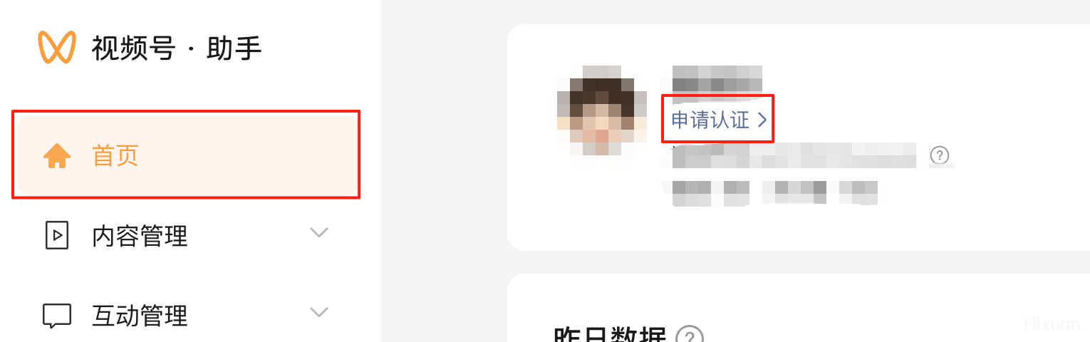目前视频号助手认证申请入口在首页,视频号名称下方哈。
