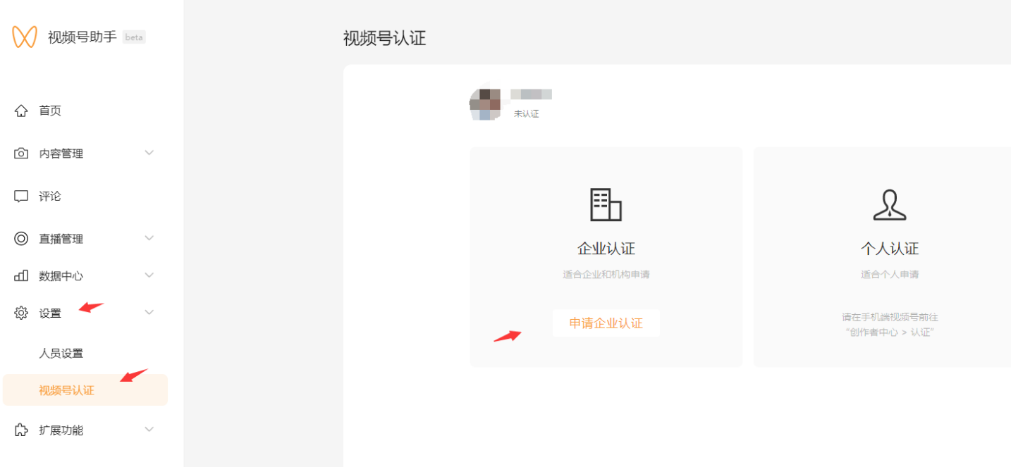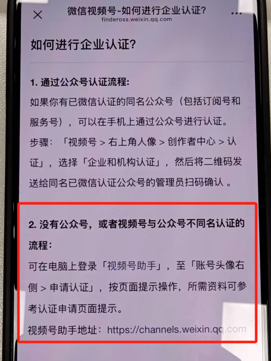 问题:视频号管理员扫码登录视频号助手后,在视频号内没有发现视频号认证入口,请问视频号申请认证入口是在哪里?
