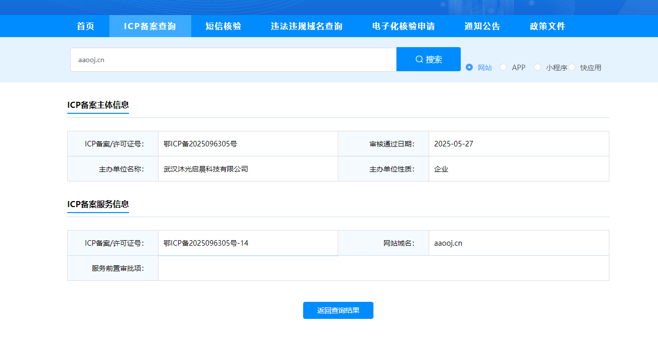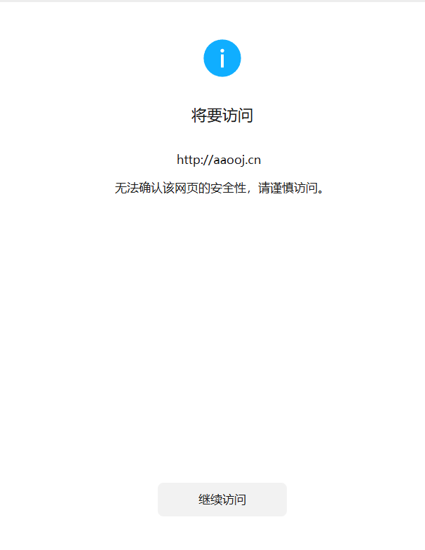 微信访问aaooj.cn被拦截,突然这样,我只搭建了一个公司的首页,并且是已经备案过的,工业和信息化部政务服务平台 ICP/IP地址/域名信息备案管理系统,可以查到的ICP备案/许可证号:鄂ICP备2025096305号-14