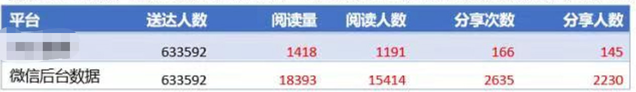 比如,群发一次图文信息,微信后台数据展示群发实际接收人数为10000,但返回至调用接口平台的数据少于1000