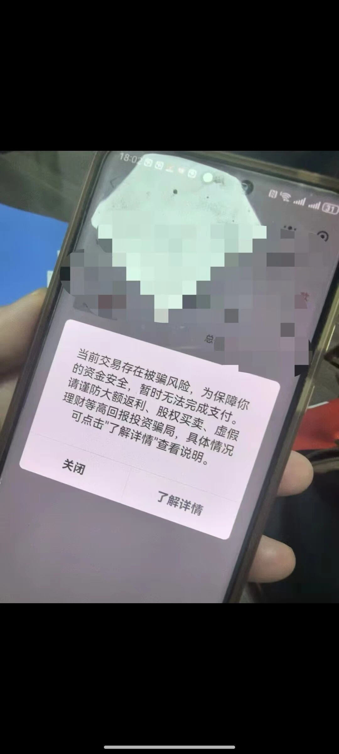 当前交易存在被骗风险,为保障你的资金安全,暂时无法完成支付。