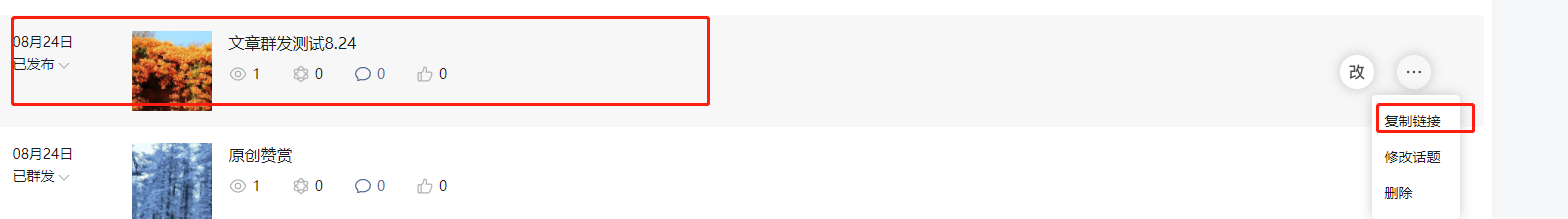 如果想修改之前素材链接,可以先在草稿箱——历史图文素材——转存对应图文素材至草稿箱,转存以后可以在草稿箱中直接编辑以及发布。