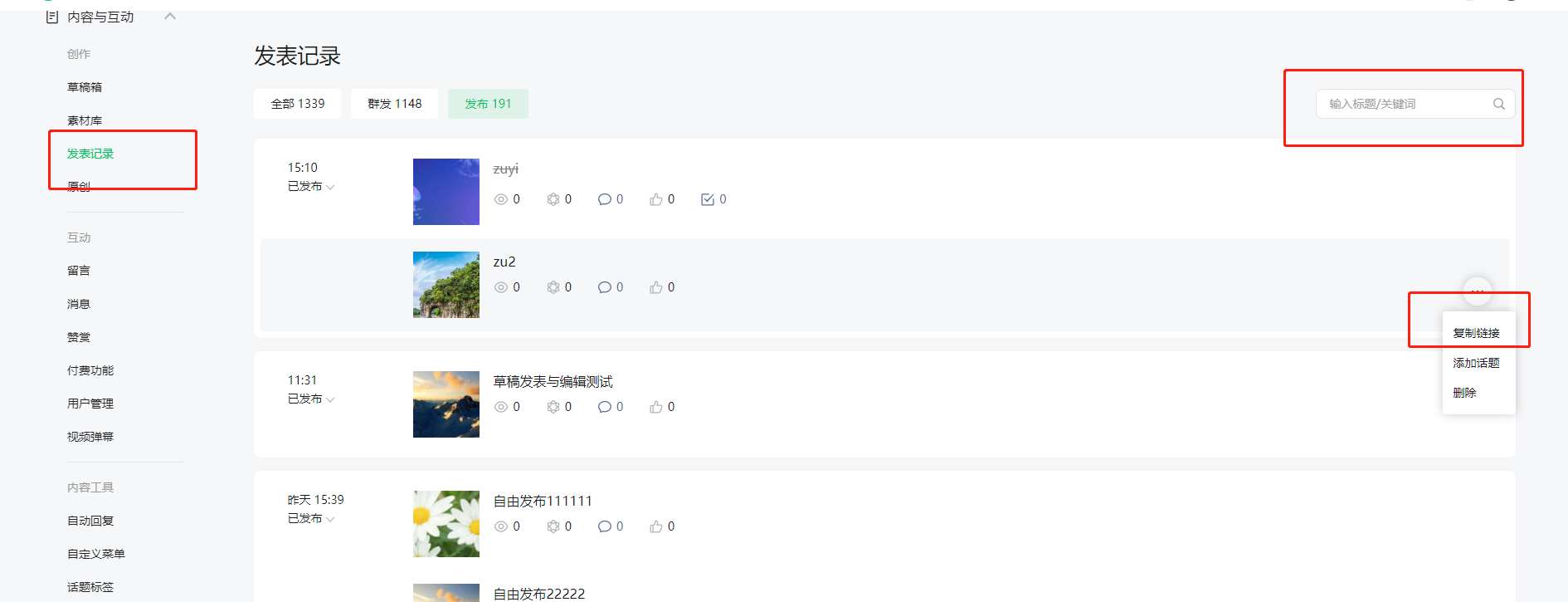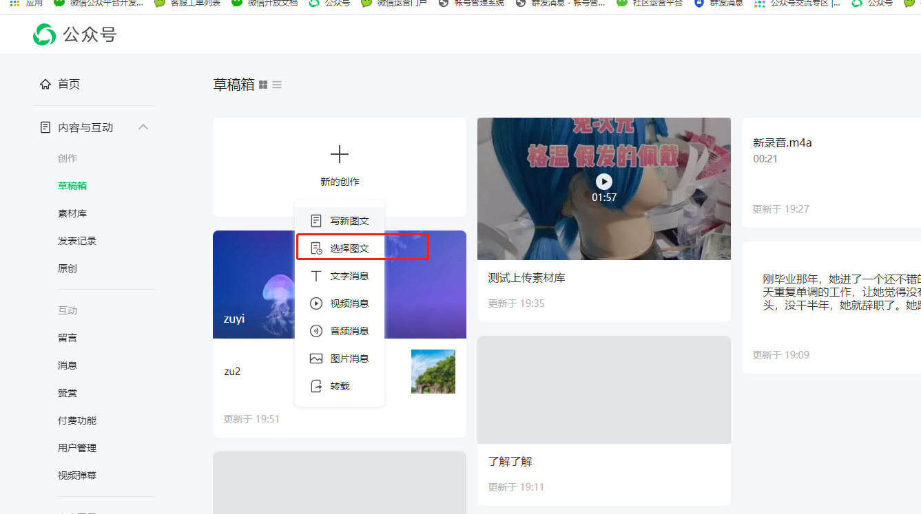 回复用户信息草稿箱的图文根本选择不了!以前还可以做长链接,现在都发不了!能不能把链接时间变成自己可以控制的?短效链接时效太短一点都不方便