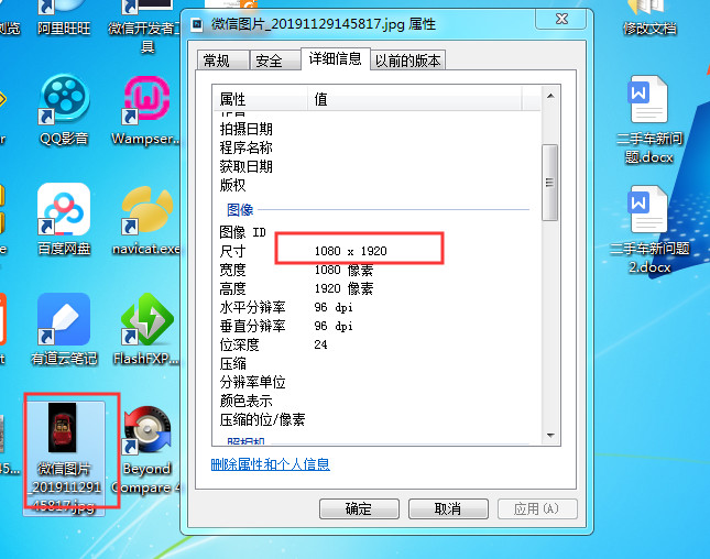 任选一张图片,可以在电脑系统上看到图片的尺寸信息,在开发工具中获取的图片信息height和width是一致的,但是在真机上获取的height和width是不一致的,上传图片时限制宽高的功能bug