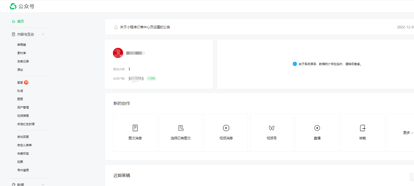 打开微信公众号,进入首页,竟然没有“草稿箱”了,昨天和今天都一样,怎么回事?